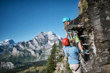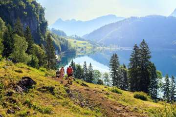 So geht es vom Zwerg-Bartli-Erlebnisweg zu den Klettersteigen, über den Seilpark und den Spielplatz zurück ins Märchenhotel Bellevue. Von da kommt man um eine Wanderung zum Oberblegisee kaum herum, der glitzernden Perle unter der Glärnischwand.