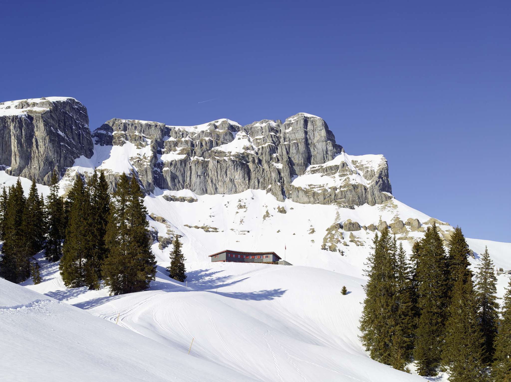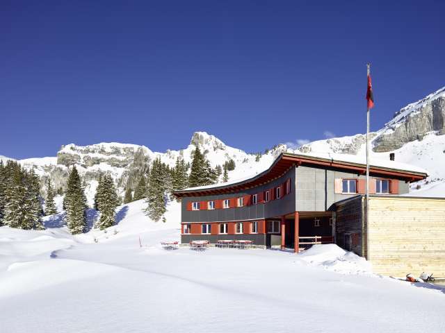 Das Ortstockhaus ist im Glarnerland auf der Braunwaldalp gelegen, umgeben von Ortstock, Eggstöcke und mit Blick auf die Glarner Alpen.