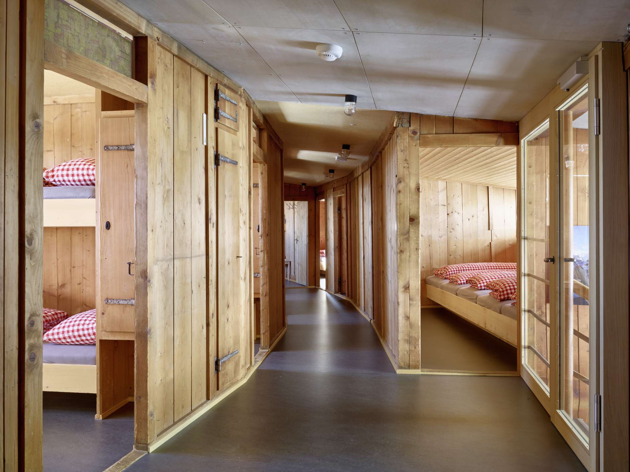Übernachtungsgäste träumen in den Original-Zimmern in neuen Betten und rot-weiss-karierter Bettwäsche. Statt Fernsehen gibt’s Fernsicht – mit unvergesslichen Bildern, am Tag wie in der Nacht.