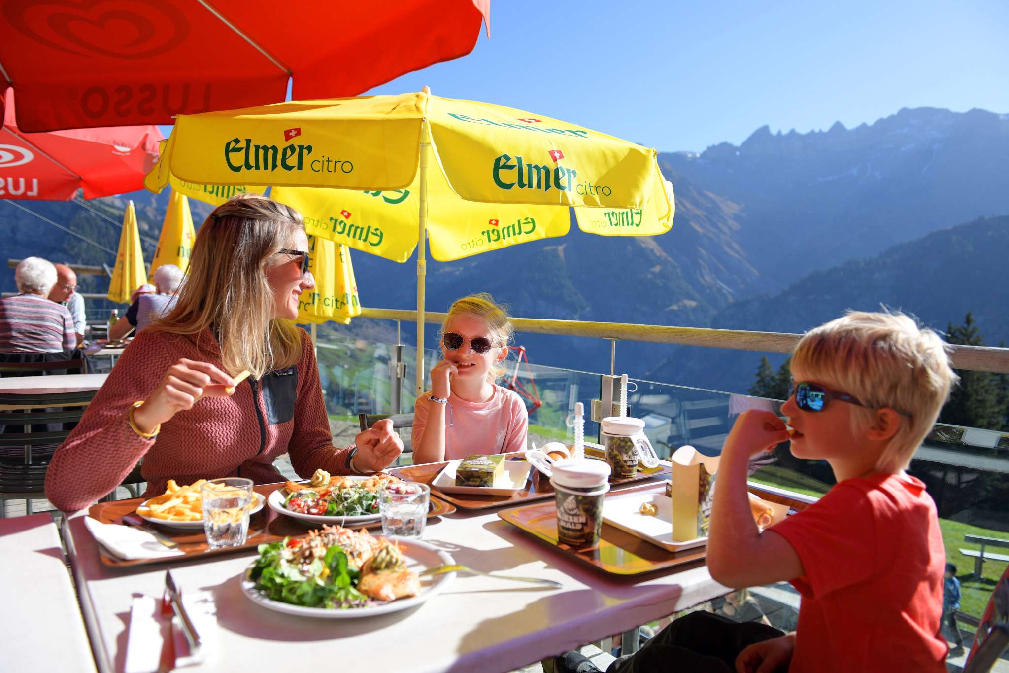 Marktstil bietet eine unkomplizierte Selbstbedienung und kurze Wartezeiten. Auch Pommes Frites und Spaghetti gehören zur Speiseauswahl. Somit ist das Restaurant Ämpächli der ideale Verpflegungsort für Familien, grössere Gruppen und Schulklassen. Lassen Sie sich verwöhnen und geniessen Sie auf der grossen Sonnenterrasse das Panorama und die frische Alpenluft und die Aussicht auf das Martinsloch und die Tschingelhörner.