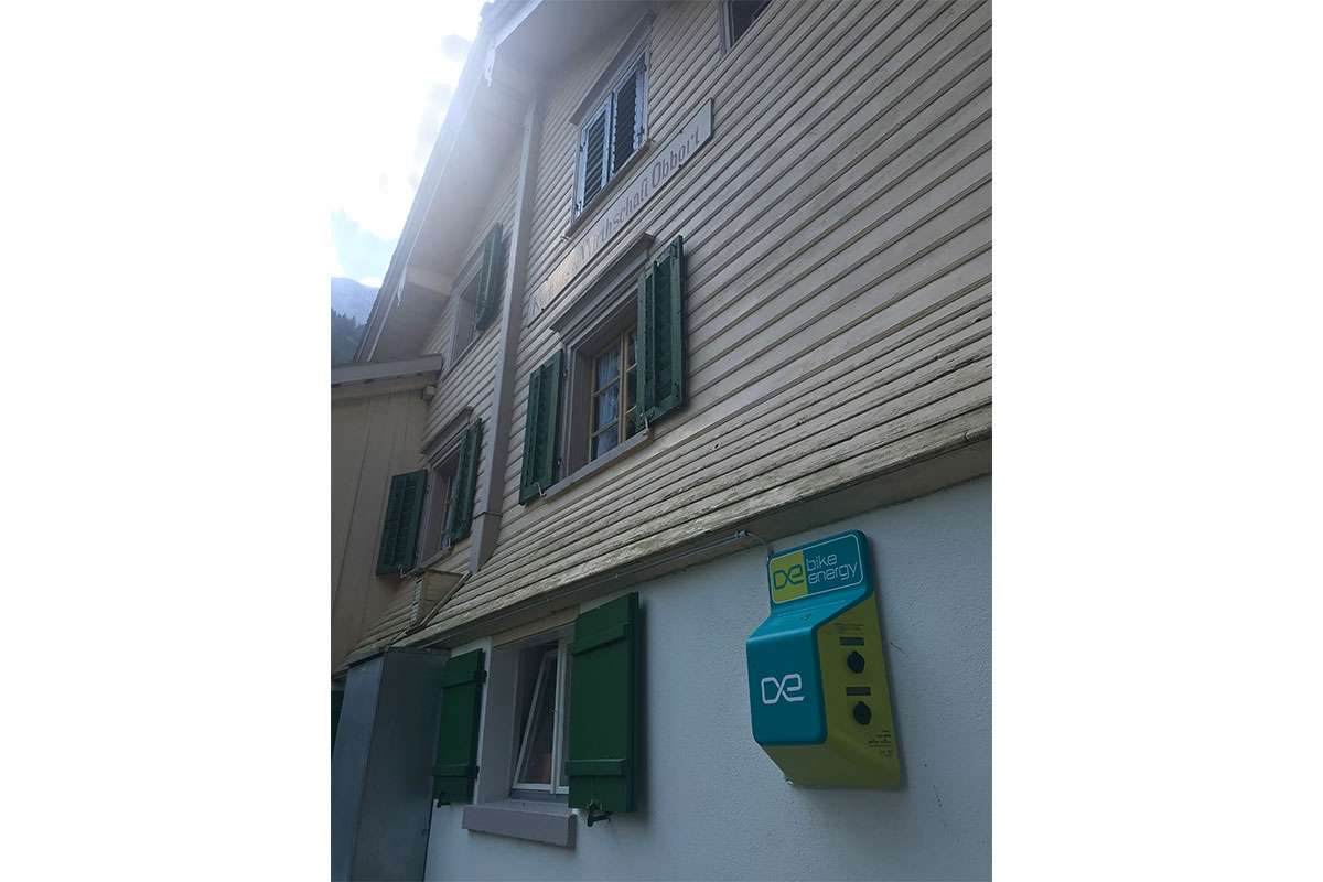 E-Bike Ladestation von bikeEnergy neben dem Berggasthaus Obbort.