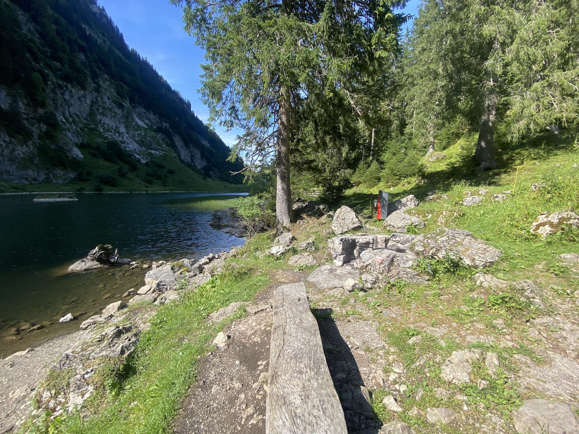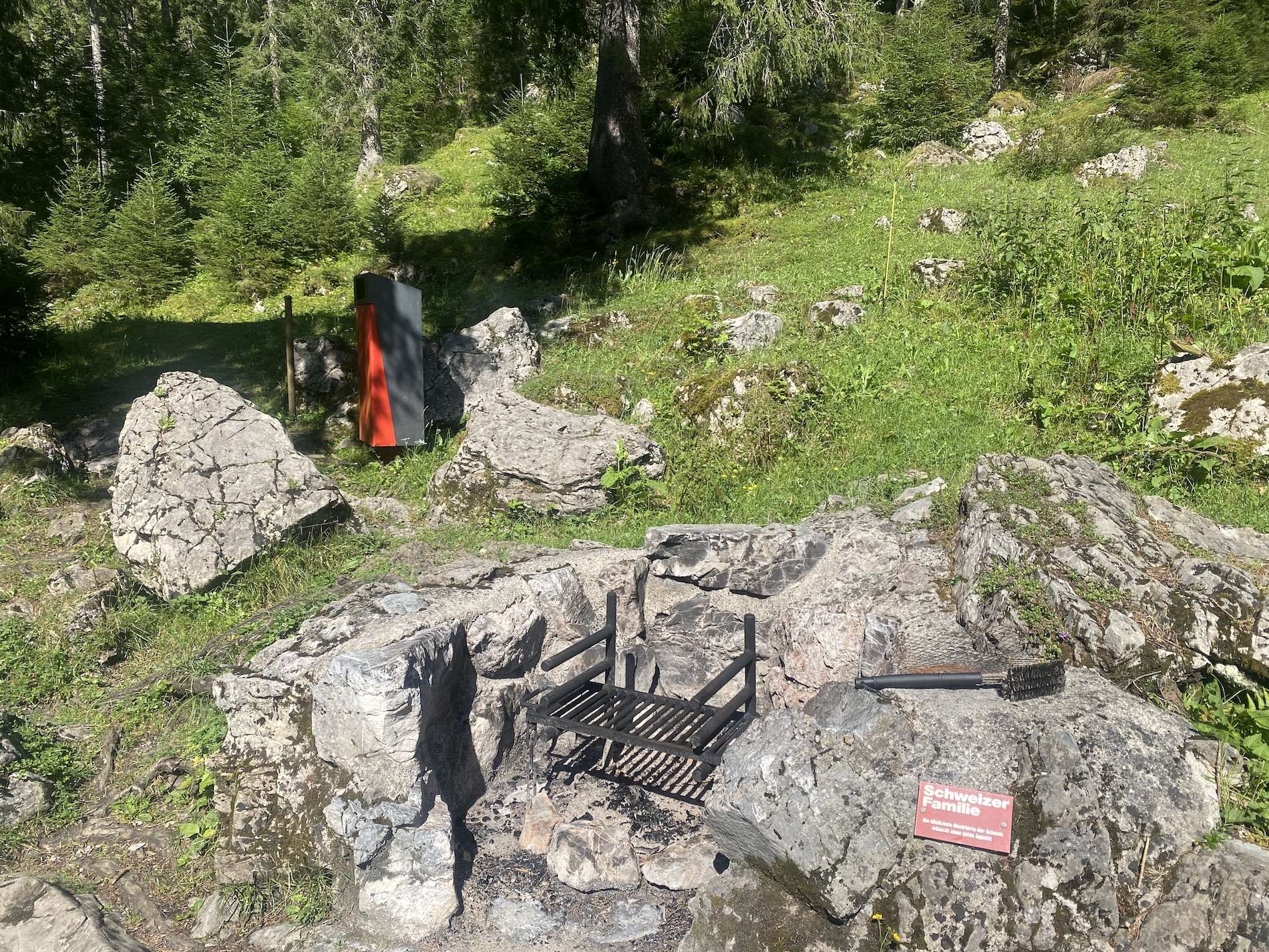 Am wunderschönen Talalpsee gibt es gleich zwei Schweizer-Familienfeuerstellen.
