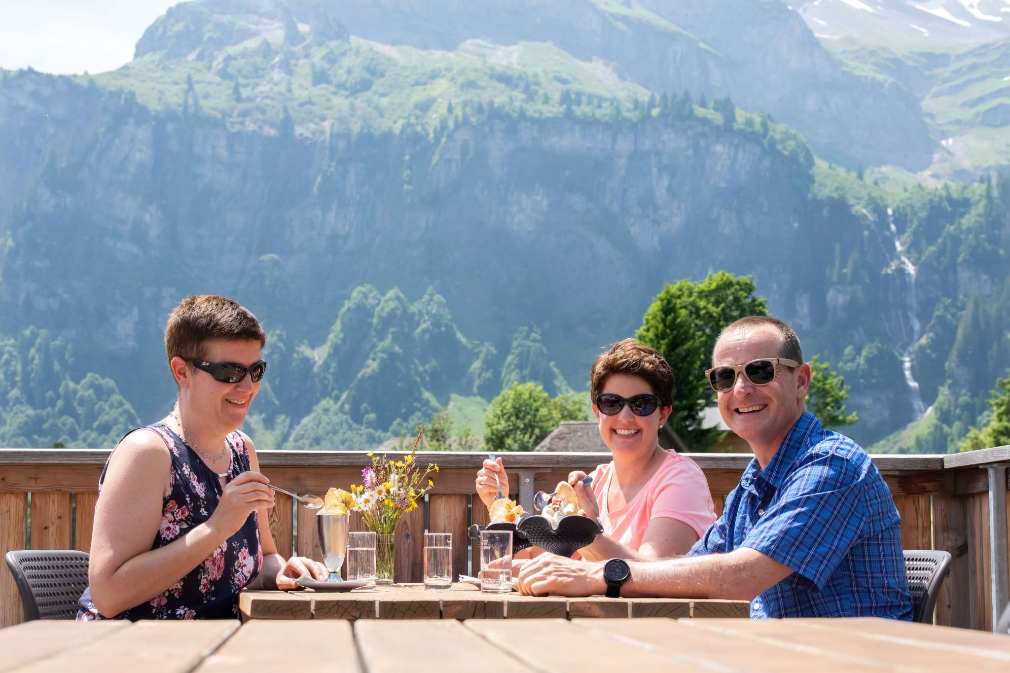 Geniesse auf unserer Sonnenterrasse den herrlichen Ausblick auf die Glarner Berge, lass dich von unserem Küchteam mit einem feinen Menü oder Tagesteller verwöhnen oder geniess einen köstlichen Tee oder Kaffee mit einem hausgemachten Stück Kuchen dazu.