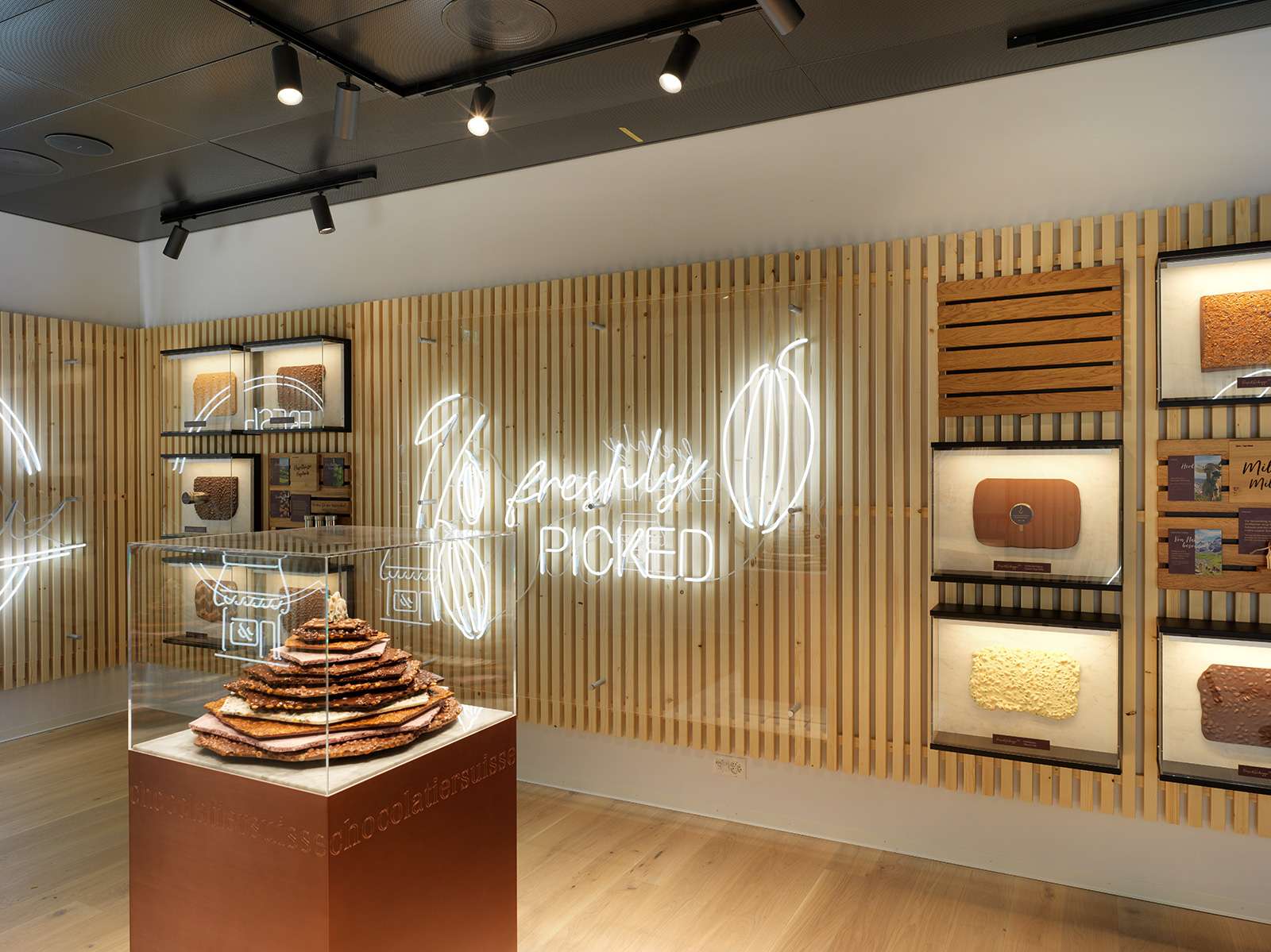 Neben dem Rundgang gibt es im House of Läderach einen Factory Store, der eine besondere Überraschung parat hält: die längste FrischSchoggi-Theke der Welt mit über 20 köstlichen Sorten. Probieren ist hier ausdrücklich erwünscht. Die großen Platten werden täglich in der Schweiz produziert und innerhalb weniger Tage weltweit in die Chocolaterien geliefert und dort an der Theke individuell auf Kundenwunsch in Stücke gebrochen. Darüber hinaus können Schokoladenliebhaber das Läderach Sortiment vor Ort in seiner großen Vielfalt samt Pralinés, Truffes, luftigen Mini Mousses und weiteren süssen Verführungen entdecken und zu attraktiven Preisen erwerben. Ein besonderes Highlight ist zudem das Walk-in Atelier innerhalb des Factory Stores, welches Gästen ermöglicht, eine individuelle Schokoladen-Tafel samt persönlicher Dekoration zu gestalten.