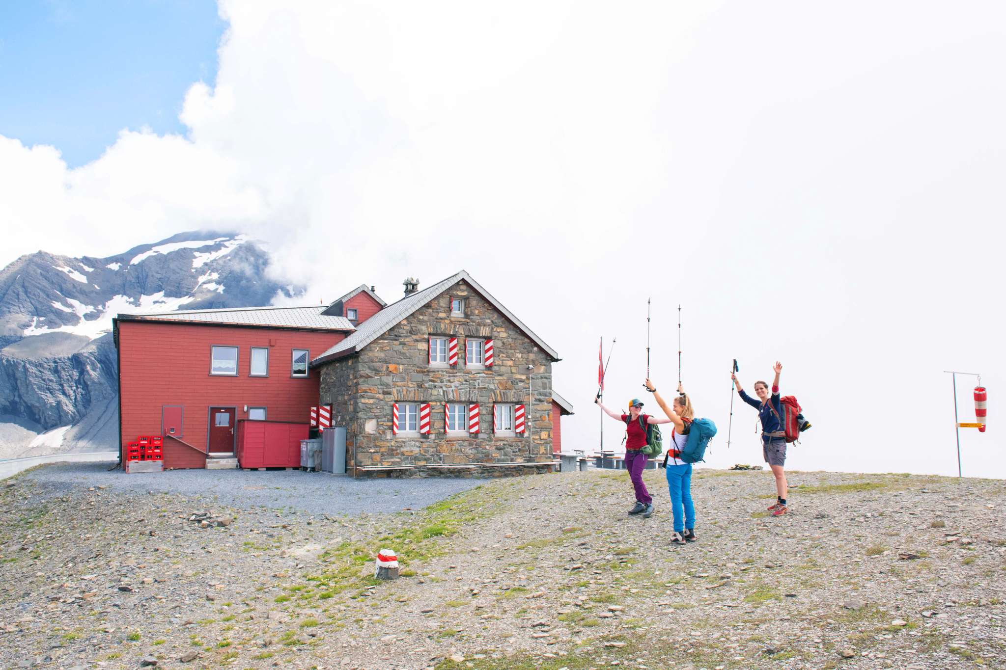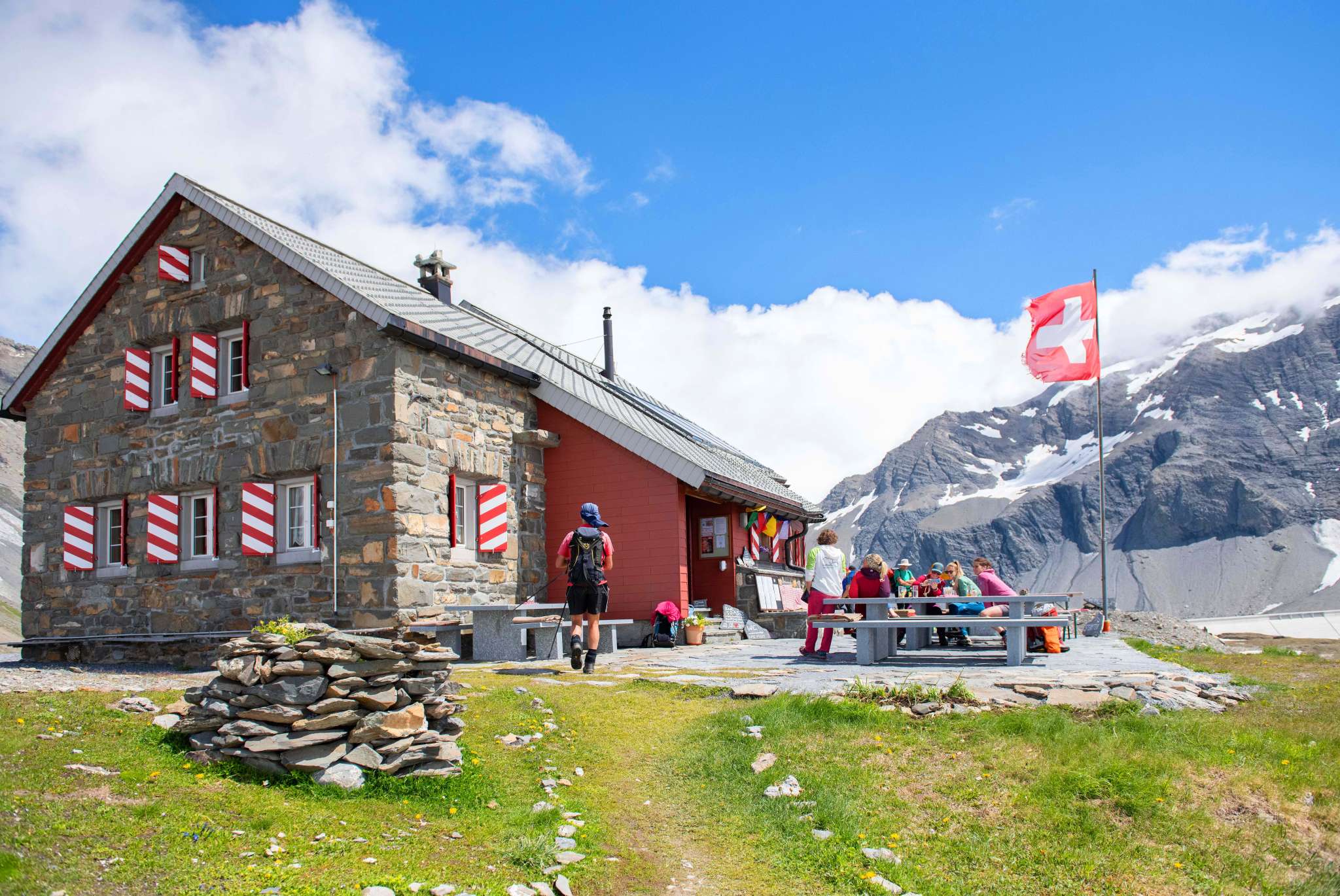 SAC-Hütte auf der Muttenalp und am Wanderweg weiter zum Kistenpass in den Glarner Alpen. Die Oase auf 2501 m.ü.M.!