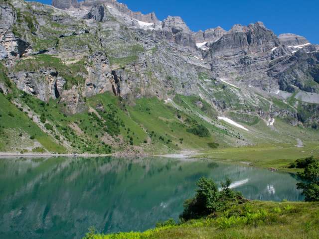 Der tiefblaue Oberblegisee zählt zu den schönsten Bergseen in der Schweiz und versprüht viel Mystik wegen seines unerforschten Abflusses. Wilde Bergbäche und eine wunderbare Alpenflora umrahmen dieses Naturspektakel. Besonders beliebt ist diese Wanderung bei Familien und für Schulreisen, da sie sich bestens zum Picknicken, Sonnen und Baden eignet.