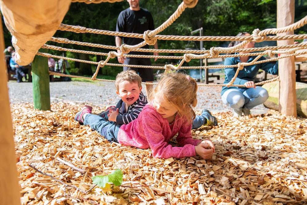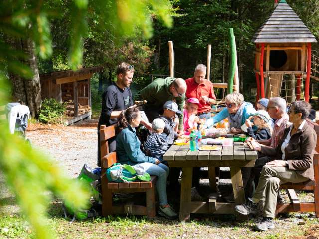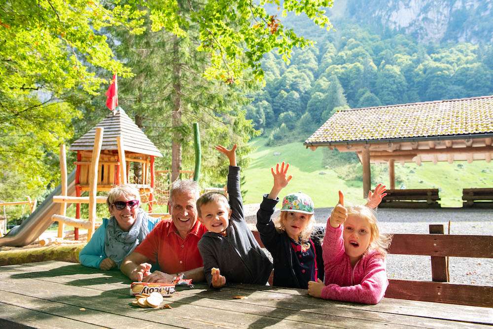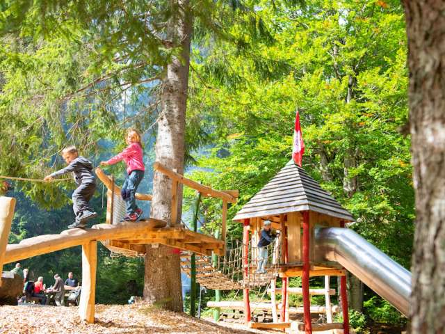 Ein Teil der Wanderung zum Spielplatz befindet sich auf dem abwechslungsreichen und landschaftlich reizvollen Holzskulpturen-Rundweg, welcher Abwechslung, Spass und Entdeckungsfreude bietet. Ein kinderwagentauglicher Forstweg führt zum Bergrestaurant. Der neu ausgebaute Spielplatz lockt mit Wald, Bach, attraktiven Spielgeräten, Lehr- und Lerntafeln. Die gepflegten Feuerstellen sind mit einem höhenverstellbaren Rost ausgestattet. Ausserdem gibts beim Blockhaus einen grossen gedeckten Sitzplatz mit mehreren Bänken und Tischen. Und auch eine Toilette ist im Sommer für Gäste geöffnet. Der Platz eignet sich u.a. hervorragend für Schul- und Kindergartenreisen.