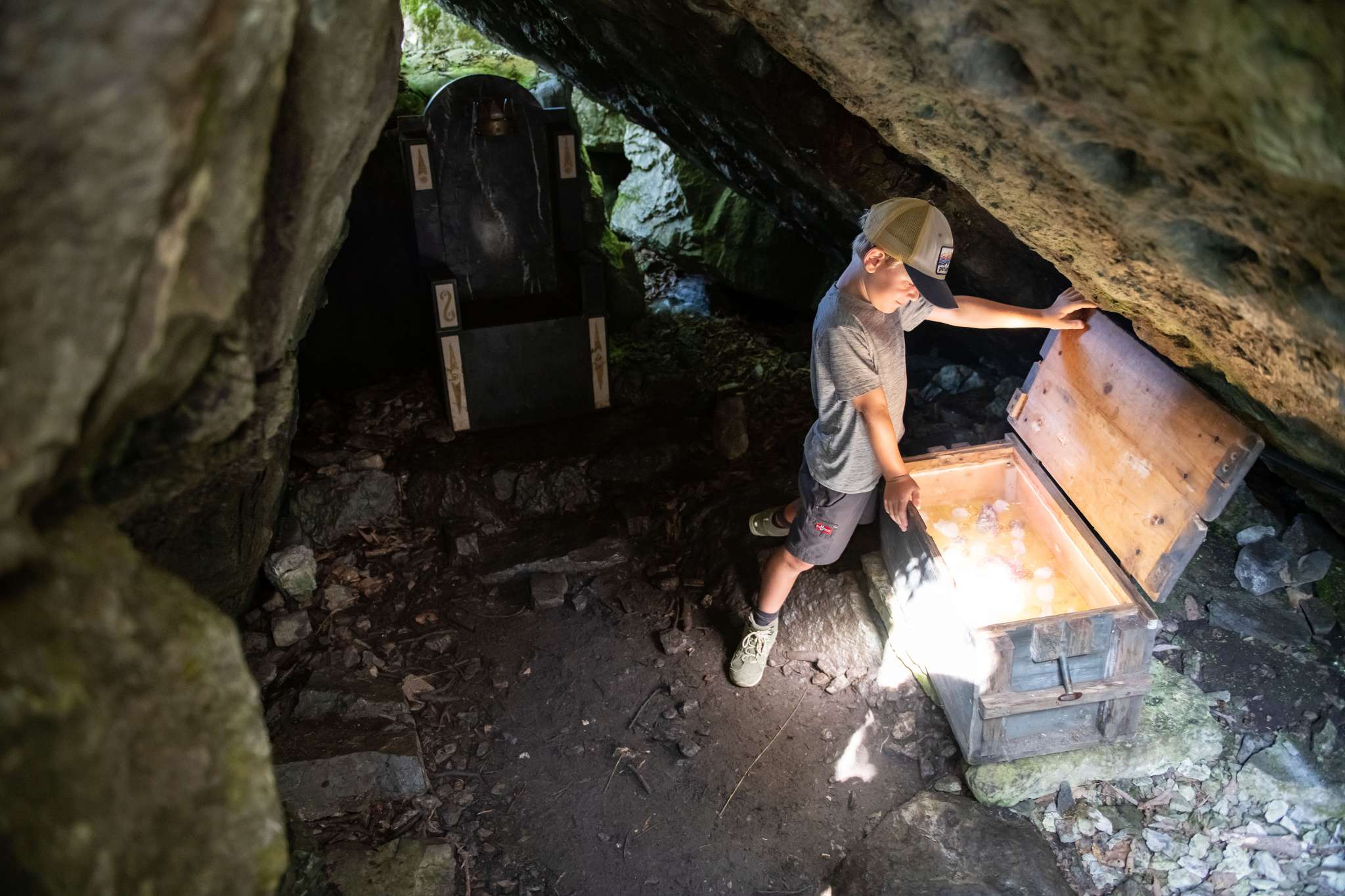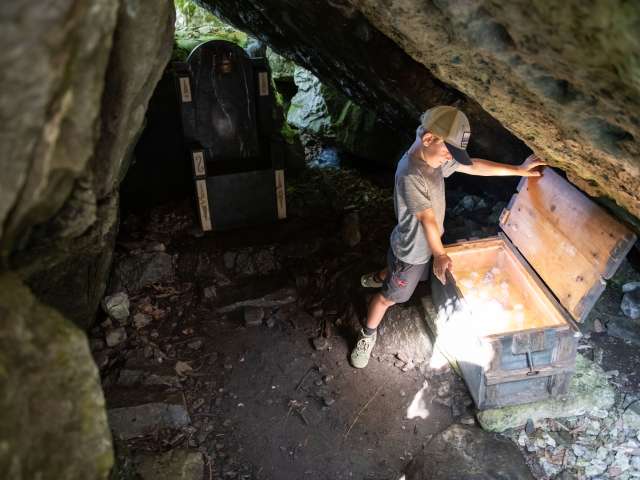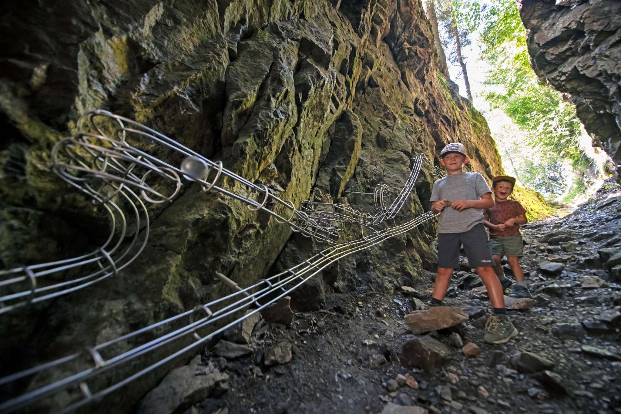 Der Zwerg Bartli mit seinem langen Bart, seiner roten Hose und seinem grünen Pullover kommt von Mitte Juni bis Oktober aus seinem Hüttli, um Familien willkommen zu heissen und ihnen seinen Wald zu zeigen. Der Weg führt vorbei am mächtigen Brummbachfall mit dem Wasserspielplatz, am kleinen Holzhaus der Tante Tiidi, welche einst dem Zwerg die Hosen flickte. Wer die Edelsteinspalte entdecken geht, wo Bartli den leuchtend roten Edelstein fand, findet noch seinen Pickel und seine Grubenlampe. Man könnte meinen, er sei soeben aus der Miniaturschlucht herausgesprungen. Vielleicht hinauf in die Höhle von Zwerg Ägiidi, wo dessen Tischchen und sein Bettchen stehen? Auch hier kann er nicht weit sein, denn die Grubenlampe flackert noch und im Tellerchen liegt noch etwas von seinem Znüni, welches Kinder für ihn bereitgelegt haben. Wenn Zwerg Bartli aber nicht zu Hause in seinem Rindenhüttli ist, dann trifft man ihn womöglich im Zwergenschloss bei der imposanten Spalte im Felsen an, dort wo der Thron des Zwergenkönigs steht, die Kerzen brennen und im Spiegelsaal die letzten Blumen vom grossen Zwergenball liegen.