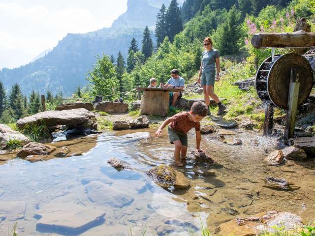 Gumen ⇒ Braunwaldalp Oberstafel ⇒ Zwergenschloss ⇒ Edelsteinspalte ⇒ Zwergenhöhle ⇒ Rindenhüttli ⇒ Grotzenbüel ⇒ Zwergenturm ⇒ Wasserspielplatz ⇒Tiidis Hüsli ⇒ Musiktruhe Braunwald