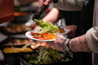In geselliger Atmosphäre werden zarte Fleischstücke, feine Saucen und vielfältige Beilagen serviert – ein kulinarisches Erlebnis, das Wärme und Genuss perfekt verbindet.