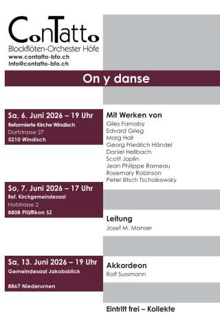 Das Blockflötenorchester "ConTatto" unter der Leitung von Josef Manser bittet zu einem besonderen musikalischen Ereignis:
