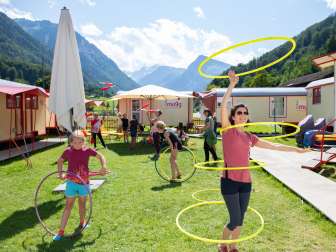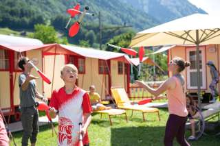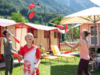 Aktives Vergnügen ist garantiert beim Artistenplausch-Workshop im Zirkusdorf. Auf spielerische Art wird den Teilnehmenden gruppenweise das Jonglieren, Einradfahren oder eine andere Zirkusdisziplin nähergebracht.