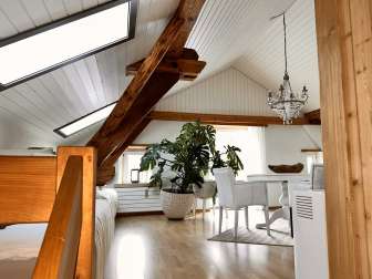 Die geschmackvoll eingerichtete Dachgeschoss Ferienwohnung bietet einen wunderschönen Blick auf die umliegende Bergwelt und lädt zum Entspannen und Geniessen ein. Sie verfügt über einen gemütlichen Wohnbereich, eine gut ausgestattete Küche und eignet sich für Paare, Familien oder kleine Gruppen. Das Event-Iglu kann auf Anfrage zusätzlich gebucht werden.