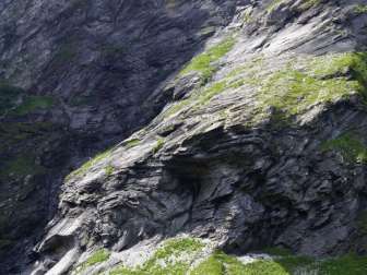 Hier entdeckt man entlang der steilen Schluchtfelswand eine markante Gesteinsfalte.