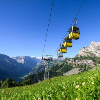 Als Ersatz für die 2er Gondelbahn wurde 1990 die erste Gruppenumlaufbahn der Schweiz vom Hüttenberg ins beliebte Ski- und Wandergebiet Grotzenbüel erstellt. Die Bahn ist mit zwei 4er-Gruppen im Sommer und Winter in Betrieb. So gelangst du bequem in die Glarner Bergwelt mit fantastischem Blick auf den Ortstock und Tödi.
