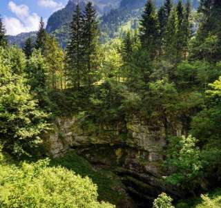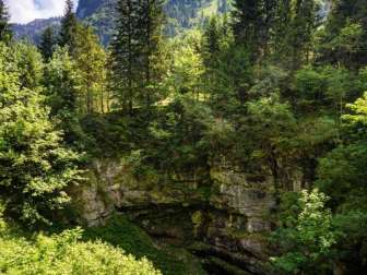 Wenige Meter westlich des Wanderweges verbirgt sich ein riesiger Einsturztrichter eines unterirdischen Höhlensystems - die Helllochdoline! Sie ist mit rund 20 m Durchmesser die grösste Doline in der Tektonikarena Sardona. Durch die stetige Auflösung des Kalksteins entstehen entlang von Brüchen und Klüften weitverzweigte unterirdische Gänge. Nahe der Oberfläche können diese Hohlräume einstürzen und es entstehen sogenannte Dolinen.
