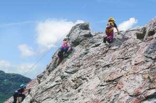Was steht Spannendes auf dem Programm? Grundlagen zum Klettern; Bouldern und dabei die Grundtechniken zum Klettern lernen; gemeinsam eine Seilbahn bauen; Abseilen; Badespass im Mettmensee; helfen im Hüttenalltag; feines Essen; gemütliches Beisammensein