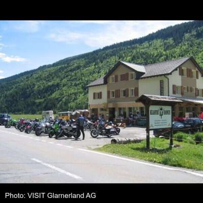 Dieses Biker-Hotel befindet sich am Klausenpass in den Glarner Alpen, 1347 Meter über dem Meeresspiegel.