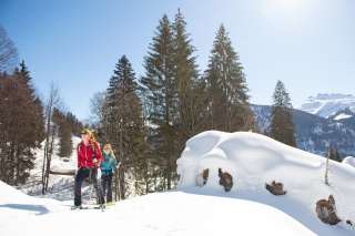 Der Schneeschuhtrail zum Oberblegisee zählt zu den landschaftlich schönsten Schneeschuhtouren in der Ferienregion Braunwald. Ab der Bergstation der Luftseilbahn Luchsingen-Brunnenberg führt der markierte Trail durch die verschneite Landschaft mit eindrucksvollen Ausblicken auf die umliegende Bergwelt.