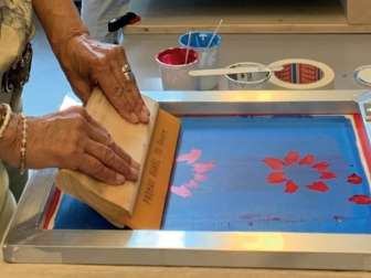 Mit Siebdruck generationenübergreifend mitgebrachte Textilien bedrucken.