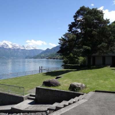 Kleines Strandbad mit Liegewiese, Umkleidekabine, Toiletten und Grill (ohne Kiosk). Ein idyllischer Ort für ein erfrischendes Bad im Walensee. Kostenlose Nutzung.