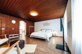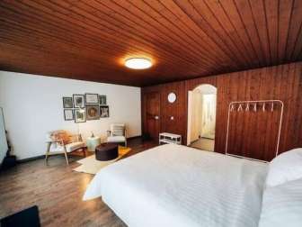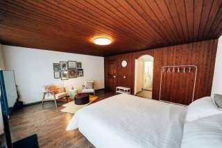 Ein bequemes Queensize-Bett sorgt für erholsamen Schlaf, während die stilvolle Sitzecke zum Entspannen, Lesen oder gemütlichen Fernsehabend einlädt.