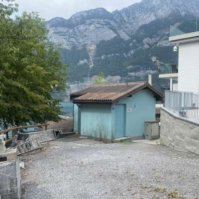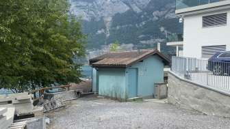 Kleines Toilettenhaus, versteckt hinter den Geleisen, direkt am Walensee.