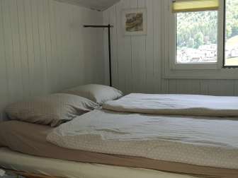 The guest room on the upper floor is accessible via a narrow staircase and is simply furnished. Also on the upper floor, a cozy seating area invites you to read. The cozy Arvenstübli with tiled stove on the ground floor may also be used. The very large bathroom (with tub and shower) is also shared. The kitchen can be used on request. I offer breakfast (bread, butter, jam, egg, cheese, coffee or tea) for CHF 10/person (served on the terrace when the weather is nice). Payment on site.