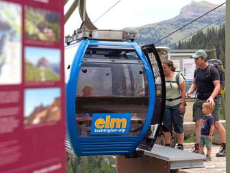 Für kurze Weile sorgt dabei ein Hörspiel, dass nicht zuletzt auf die direkte Einfahrt in den Welterbe-Perimeter aufmerksam macht. Oben angekommen geht die Entdeckungsreise auf dem Rundweg über den Firstboden weiter. Während einer Wanderung von 1,5 Stunden erfährt man Interessantes über die Geologie, das Welterbe Sardona und die Tschinglen-Alp. Die Krönung der Wanderung bildet der Firstboden auf 1‘750 m ü.M. Auf dieser natürlichen Terrasse wurde ein Rundholzbau geschickt ins Gelände eingefügt.