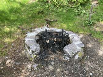 Equipped with firewood, a grate, a table and four benches as seating, about 20-25 people can sit. The fireplace is right next to a nice swimming area.