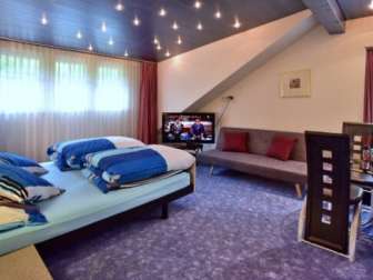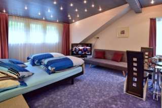 BEAUTIFUL COMFORTABLE ROOMS: All with shower/WC, TV, DVD and MP3 player and breakfast. Midnight snack possible until 2 a.m. Wireless (internet) throughout the house. BAR: Bright, friendly and welcoming, the hotel bar presents itself with its red and black sofas and stylish lamps and spreads a cozy atmosphere. This should be transferred to the guests, who can "enjoy one" from the large selection of cool drinks without hectic and stress. The bar also offers plenty of space, where in addition to the Guinness beer on tap, the very large selection of whiskies and spirits also catches the eye. From the small menu, fine snacks such as schnitzel bread, chnoblibrot or chäschüechli can be ordered until 2 a.m. for the small appetite.