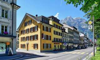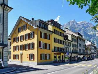 Our hotel is centrally located in the main town of Glarus. Directly opposite the beautiful Volksgarten, two minutes walk from the train station and bus stop and 3 minutes walk from the town center.