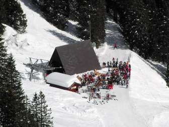 The Pleus snow bar is the ideal stop on the slopes for a quick snack in the middle of the snow sports area at the valley station of the Pleusbahn.
