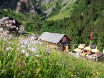 A highlight: Alp Tschinglen at 1482 m. Here, the Tschinglen inn invites you to take a leisurely break, while the old stables tell of the past. The clear stream next to it is the perfect place for a well-deserved break before you continue.